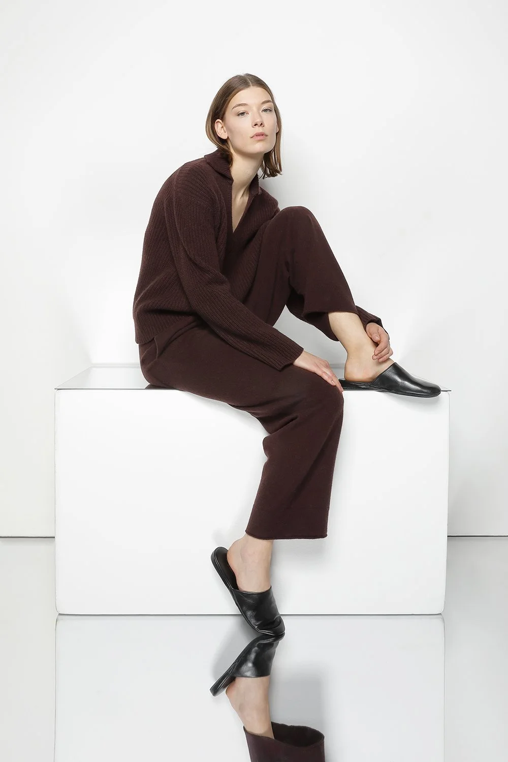 CASHMERE IN COL. EMBER pure icon rib eaton + pure cropped pleated pants